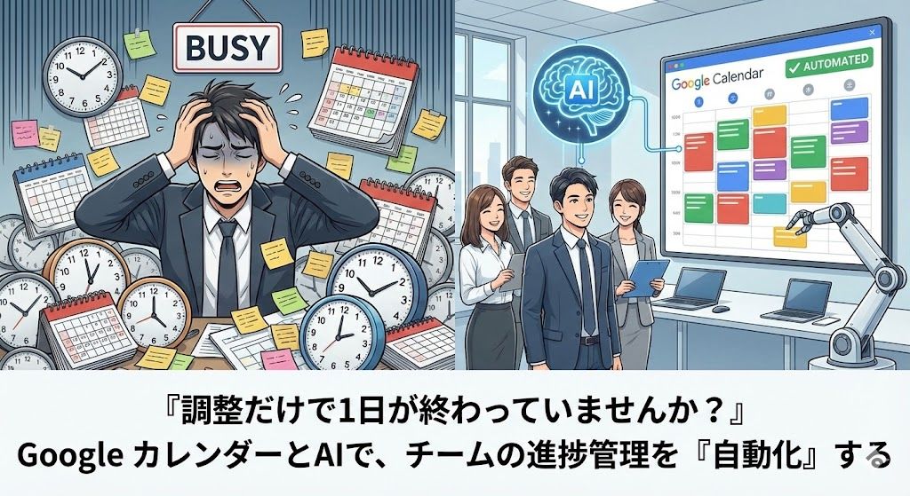 調整だけで1日が終わっていませんか?Google カレンダーとAIで、チームの進捗管理を「自動化」する
